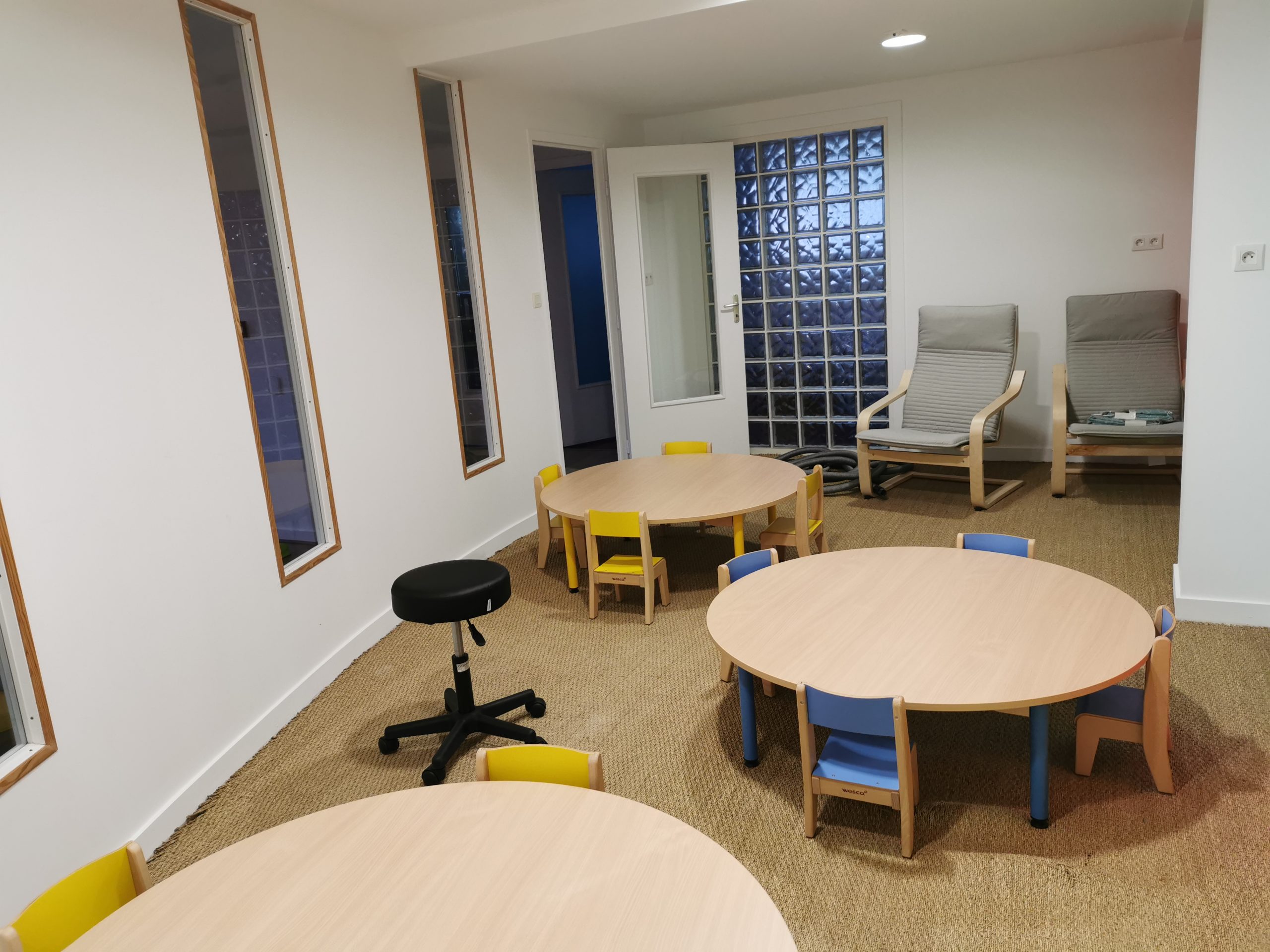 L’espace activité/repas dans lequel nous organisons toutes les activités encadrées (peinture transvasement et bien d’autres…) Nous y prenons, également, les repas.